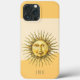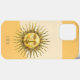 Celestial Sol ansikte med geometrisk färgblockbakgrund och anpassade gulbrun text för monogram