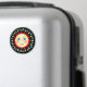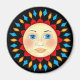 En levande celestial sol ansikte utstrålar solsken på den här magneten. Den har färg av gult, röd, blå och orange mot svart bakgrund.