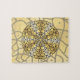 En snöre-liknande mandala på mörk blått med ljusblå stjärnor och guld-stjärnor och en ljus gradientcirkel bakom ger en roligt, design som påminner om en nattlig himlar och solig dag med en bild.