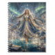 Capture your thoughts and creative ideas in this premium fantasy notebook featuring a radiant celestial sorceress surrounded by swirling golden light and cosmic energy. Deep blues, shimmering gold accents, and ethereal illumination create an inspiring journal that blends fine art with everyday functionality.