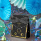 En mystisk sfärisk monogramformad bröllop i svart och guld. En enkel tarot stil-design som användor en himlar-stjärna med måne, sol och motsvarande hjärtsmonogram med guld. En elegant svart och guld celestial design med klassskripttypografi. Ett modernt måltema för bröllopets favoritbox med modernt inslag. Det finns även alternativ för matchning av bröllop-kontorsartiklar och andra bröllopsinbjudningsformat.