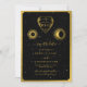 En mystisk sfärisk monogramformad bröllop i svart och guld. En enkel tarot stil-design som användor en stjärnornas bakgrund med ett guld-halvmånsfärande måne, celestial sol och matchande hjärtmonogram. En elegant svart och guld celestial design med klassskripttypografi. Ett modernt måltema med bröllop spara datum-kort med modernt inslag. Det finns också möjlighet att matcha bröllopsinbjudningar och andra artiklar i kontorsartiklar.