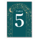 Mystical celestial teal and guld bröllop bordsnummer card