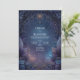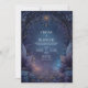 This design immerses your guests in a moody, enchanted woodland bathed in deep navy and violet tones. Intricate leaf patterns and botanical elements frame a central cosmic glow, while a radiant golden sunburst emblem takes pride of place within an ornate arch at the top. Shimmering stardust and a mystical teal swirl add layers of magic, reflecting a sophisticated high-fantasy and celestial aesthetic. As a wedding invitation, this piece is an exquisite choice for a formal evening ceremony or a romantic celebration under the stars. It provides a regal and sophisticated first impression for an enchanted forest wedding or a mystical gala event. This dreamy and detailed aesthetic is perfectly suited for various high-end social celebrations or creative luxury branding projects.