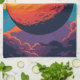 The Celestial Sunset Kitchen Towel features a radiant, planet-like sphere glowing with bold hues of orange, gold, violet, and blue. This abstract, space-inspired design transforms a practical kitchen essential into a vibrant piece of functional art. Whether drying dishes or hanging on display, this towel brings modern energy and visual warmth to your culinary space.