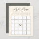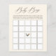 Elegant signerande kalligrafi "Baby Bingo" grafik, baby shower-spelblad. Boho-chic illustrerad val, måne och stjärnor med koordinerande rustik grå färg baktill.