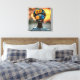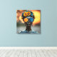 A bronze bust of a woman wears a sunflower crown and round glasses, one lens showing the sun, the other the night sky.