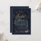 A stunning double gold boho arch frame beautifully highlights an inner watercolor painting of a starry night, featuring deep navy blue with enchanting traces of pink and yellow. This design showcases intricate celestial elements: the sun, the moon, the chalice, and twinkling constellations and stars. All set against a rich deep navy blue and gold color scheme (please note, the gold is a digital effect, not real foil!), this invitation perfectly blends astrology, horoscope, and zodiac vibes. It's a truly unique bridal shower invitation for a modern bride seeking an enchanted bridal shower or a boho celestial event. Set the tone for an unforgettable celebration filled with cosmic wonder!