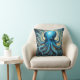 Celestial Waves: The Blue Octopus Fractal Art Kudde