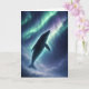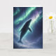 Skicka en stund av lugn, förundran och samhörighet med detta fantastiska valhaj-kort med norrskenmotiv. Med en majestätisk val som stiger upp genom en lysande himmel med norrsken förenar detta konstverk havets stillhet med himlens skönhet och skapar en djupt känslomässig och fridfull scen.
