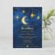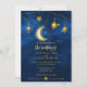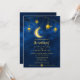 Denna vackra akvarelldesign har en stor lysande halvmåne med stjärnor och planeter på en blå midnatts natthimmel bakgrund. Baksidan av kortet har samma midnatts natthimmel bakgrund som en stor lysande halvmåne. Denna vackra inbjudan är en del av en matchande brölloppsserie som kan fullständigt anpassas.