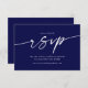 Gör det enkelt för dina gäster att svara med Celine Wedding Website RSVP-kort, med en modern, strömlinjeformad design. Framsidan av kortet uppmanar gästerna att svara via din bröllopswebbplats, medan baksidan innehåller en praktisk anpassad QR-kod som länkar direkt till din online-svarsida. Den eleganta, minimalistiska designen i djupt mörkblått (nattliga djup från bröllomspaletten) passar perfekt med det himmelska temat i Celine Wedding Suite, vilket säkerställer att din pappersvaror är både stilfulla och funktionella. Perfekt för par som vill förenkla sina RSVP:er med ett digitalt alternativ, håller detta kort din bröllopsplanering stressfri.