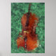 Denna vackra, stora målning av en cello mot en bakgrund av abstrakten av gröntar ger en underbar bild av musikinstrument.