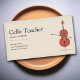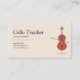 A simple business card for a cello teacher or a cellist. It comes with an illustration of a cello with a bow, all on a beige background.
