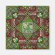 En stiliserad drake sitter i centrum av en labyrint med djupt rött och oliv grönt keltiskt knopp. Är draken fångad i centrum eller är det labyrintens mästare?