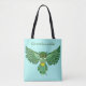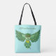 En keltisk knut arbetar i uggla med en öppen vinge-spännvidd i en teal.