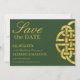 Den här enkla och klassiska Celtic Knot-Grönten och Guld Handfasting Save the Date-designen är den påminnelse som du får för speciella dag med en Guld-faux-knut över anpassningsbarnas bakgrund färg och personligens text.