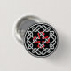 En rund knapp med en keltisk knapp med en röd kvadrat kor i mitten.