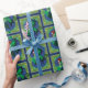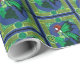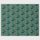 En rödhårig älv i grönt med grönt Celtic Knot work backdroppe.