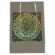 En framstående, magisk mandala av mäktig, inböjd spiral av forntida keltiska knutar mot bakgrund av forntida parker