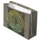 En framstående, magisk mandala av mäktig, inböjd spiral av forntida keltiska knutar mot bakgrund av forntida parker