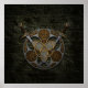 Detta är inte avsett att vara en verklig återgivning av det traditionella keltiska sköldet, som var ovoid och som vanligtvis är tillverkat av mässa eller brons. Det här är min dekorativa tolkning av en keltisk sköld, med trefaldig knut, keltiska knölpjäser och fantastiska stil keltiska svärd.