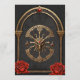 Celtiska knop och ett hjärta i den gotiska elegansen. Den gotiska inspirerade ramar omfattar elegant guldbågar och kolumner som påminner om gotiska katedraler. Dessa inslag är finmaskigt utformade och dekorerade med berusat keltiskt knut mönster. En ängslig hjärtemblem, med pulserande röda juveler, sitter inklämd i övre delen av ram. Grund i ram domineras av en gyllene skallkonstruktion som symboliserar både styrka och mysterium.