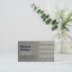 La tarjeta está confeccionada en tono gris, propio de hormigon y el cemento, con un diseño elegante, moderno y simple, a la vez que fresco y rugoso. Tambien transmite una superficie aspera.