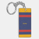 Three-color design with a main center stripe and smaller side stripes. Clean lines in three colors for your key chain. Add your name or a quote at the bottom and additional information on the back. This variant is the retro solid blue, yellow and red version.