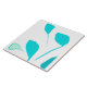 Fem stora storleka syntetiska turkosblad ritar den vita yta-plattan.