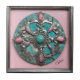 Kemiska plattor med glidsten och rosa har en bedövande mosaik av turkos och rosa stenar i en uppfångande cirkel mönster. Riken färg och den invecklade designen skapar en synligt träffande biet av konst som kommer att lägga till en kursfärgad ton till vilket utrymme som helst.