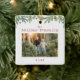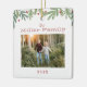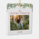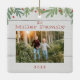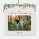Den här julprydnaden har en handdragen vinter-grön trendig längs toppen med en ren vit bakgrund. Anpassa med din familj namn, ditt foto och din dejt.
