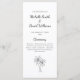 Program för temasemonismen Destinationsbröllop, med en ritning av det tropiska handflatan träd. Om du anger en enkel vit bakgrund anpassar du dig med egen information. Ett strandtema för roligten som ska planera din speciella dag.