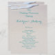 Utlysningsprogram för persikor och bröllop med anpassningsbar, med text för turkotisk färgad på båda sidor. Detta trycks på ett större storlekt lodrät-papper.