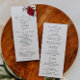 Elegant bröllop-programmet med vattenfärgstryck som illustrerar marinens och burgundens peonymer med grönt. Alla ceremonier i bröllop och bröllopsfestens namn som finns med på detta program.