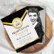 Utformningen av ceremonin i studenten innehåller en formell elegant av svart, lätt grått och guld färg med guld studenten hatt och guld stjärnor. Anpassa din egen studenten bild längst bak i inbjudan.