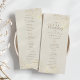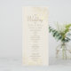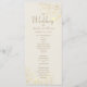 Det här elegant bröllop-programmet har delikata illustrationer av guld blommigt på en mjuk elfenbensbakgrund med modernt manus och serif typsnitt. Perfekt för att visa information om din ceremoniorder och bröllopsfest i en formell och förfinad layout. Ett tidlöst tillägg till den klassiska bröllopsdagen.