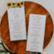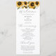 Rustiskt bröllopsprogram med vattenfärgad illustration av gult solblommor med baby andedräkt. Alla ceremonier i bröllop och bröllopsfestens namn som finns med på detta program.