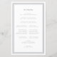 Elegant, minimalistiskt ceremoniprogram för grått och vit bröllop har en enkel modern utformning med en dubbla som ramar in gräns i grått på en skarp vit bakgrund. Traditionell, klassisk formulering ger en tidlös sofistikering. Anpassa ceremonin i bröllop till gästerna i trendigets kalligrafibrev och skript i grått. Kortets baksida matchar grått på skarpt vitt och handlar om din bröllopsfest. Om du vill ha optimala resultat ersätter du mallinformationen med din egen information som lämnar mellanrummet mellan stycken som i exemplet. Kapitalisera och använda allt nedre fodral där så anges. Kontakta mig gärna på invitationsuites@gmail.com eller med meddelandefunktionen om du har frågor om detta eller någon av våra produkter eller har en begäran från anpassningsbar färg.