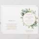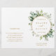I detta ceremoniprogram i bröllop finns målade vattenfärger eukalyptus grey, grönt löv och ett cirkulärt ram i guld. Om du vill ha en mer avancerad anpassning av den här designen klickar du på länken Anpassa ytterligare. Matchande objekt är också tillgängliga. Obs! Ni måste lägga dem på halva vägen när de kommer.