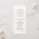 Ett tidslöst kort för ro-bröllopsprogram med mjuk vit bakgrund och känslig information om blommigten. I den här eleganten visas din ceremoniorder och bröllopsfest i en tydlig och modern layout. Perfekt för par som vill ha en romantisk och sofistikerad beröring för sin bröllop-stationär svit.