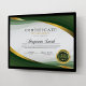 Honor achievement in style with this Elegant Green & Gold Certificate of Excellence Template, designed to deliver a bold, modern, and distinguished presentation. Featuring flowing green and gold wave accents, a refined neutral background, graceful script typography for the recipient’s name, and a classic gold award seal, this certificate instantly communicates prestige and accomplishment. The balanced layout keeps the recipient’s name as the focal point while providing clearly defined sections for award details, date, and signature. Its sleek and professional design makes it ideal for corporate recognition, employee awards, academic excellence, leadership honors, training completions, ministry acknowledgments, volunteer appreciation, and special milestones.