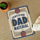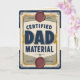 Låt pappa veta att han är den riktiga dealen med det här djärva och retroinspirerade gratulationskortet "Certified Dad Material"! Utformat för att se ut som ett officiellt certifikat är det här humoristiska kortet perfekt för fars dag, födelsedagar eller något annat tillfälle då den legendariske pappan i ditt liv ska hedras.