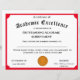 Utformningen har en röd trim med en utmärkelse av medalpriset guld i grund. Titeln visas i det traditionella teckensnittet för ett certifikat. Anpassadets text. Tillgänglig trim färg är röd, guld, blå och grönt.
