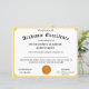 Utformningen har en guld-färgad-trim med en bild av en medalj från guld i grund. Titeln visas i det traditionella teckensnittet för ett certifikat. Anpassadets text.