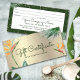 Låt dina kunder erbjuda sina tjänster till sina vänner med dessa eleganter, sofistikerade, enkla och moderna presentkort för eget namn. Det häpnadsväckande dramatiska, färgstarka, tropiska vattenfärgsfåglar av paradisblommor, faux guld glitter och kalligrafi av mörk grönt personlig täcker över en snyggt, dramatisk, faux guld metallisk bakgrund. På baksidan finns det gott om utrymme för avsändaren att skriva namnen "Till" och "Från", mängd och utgångsdatum i det vita rektangulära området omgivet av faux guld glitter sprinklad över en rik hunter grönt gräns. Anpassa med ditt företag, namn och information. Finns med vita kuvert. Gör en chic, professionell och snyggt påstående vart du än går. Matchande affärskort och andra produkter finns också tillgängliga: https://www.zazzle.com/tropical_floral_script_gold_foil_hair_beauty_salon_business_card-256830456005952732 Skriv bara in ditt företag namn och kontaktinformation i avsnittet "Anpassa den här mallen" och du kan enkelt anpassa det här presentcertifikatet. Var snäll och meddela mig med eventuella frågor eller förfrågningar.