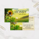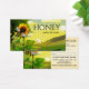 Affärskortets storleka presentkort med en konstnärlig illustration med solros och honungsbin i en scen för färsk grönt.
