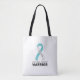 Cervical Cancer Ribbon White Tote Bag för medvetande och stöd till kvinnor som bekämpar livmoderhalscancer.