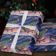 Soar into the season with this whimsical vintage style Aviation themed Christmas wrapping paper. Design features a classic Cessna Skyhawk aircraft flying through a star-filled night sky, proudly hauling a fully decorated Christmas tree strapped atop its wings. Below, illuminated snowdrifts glow under rich amethyst twilight hues, while the festive greeting “Merry & Bright” shines in retro aviation lettering.