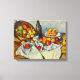 Cezanne Basket i Apples canvas wrap. Oljemålning på arbetsyta från 1894. Paul Cezanne var en konstapel som fortfarande hade livet som målare och Basket i Apples är hans mest berömd arbete. Målningen är vin flaska, brödtärna och basket-fullt av rött, grönt och gult på en vit bord trasa. En underbar gåva till fläkt av Cezanne, postimponerande och köksavtryck.